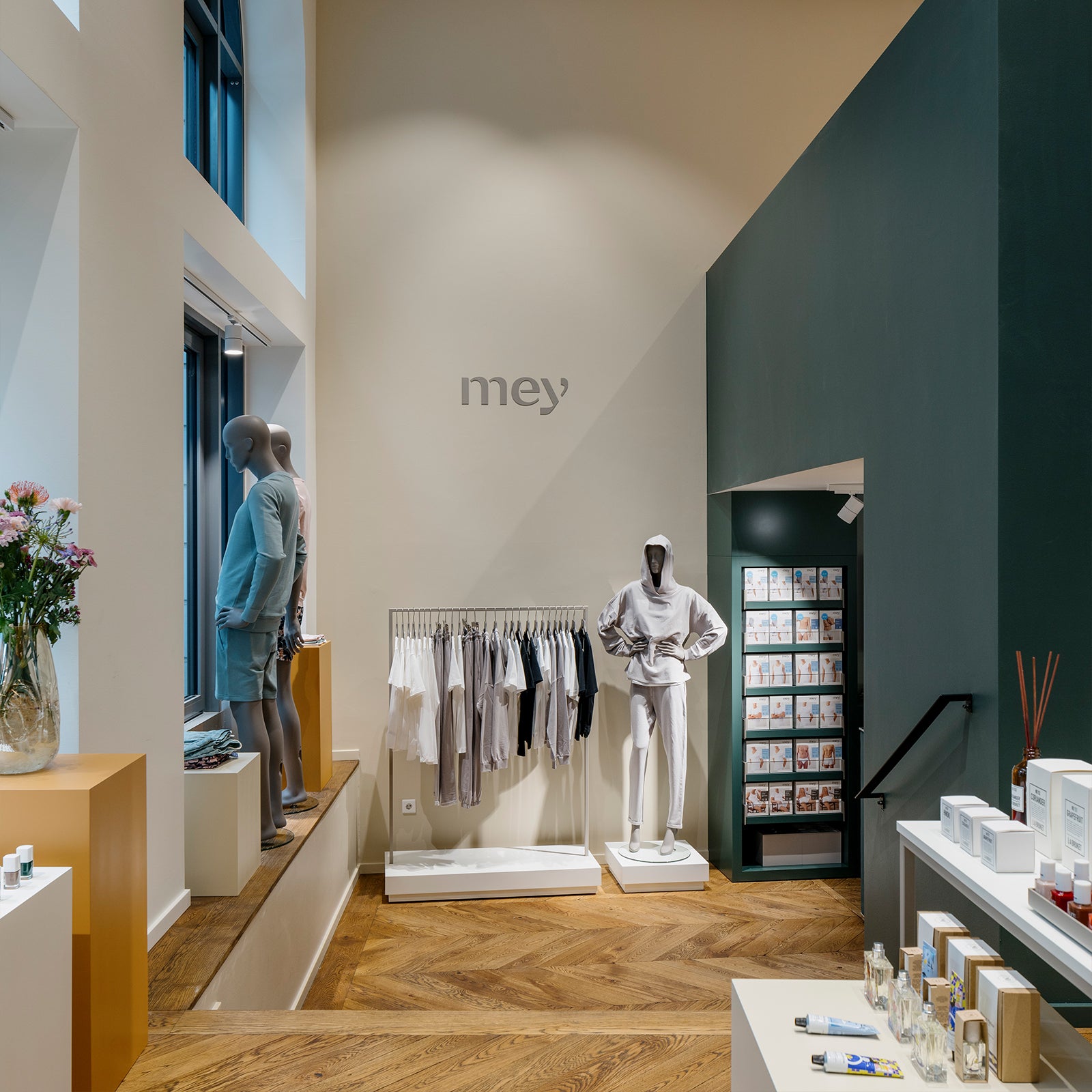 Im Herzen von Hamburg, in der eleganten Poststraße 36 – nur wenige Schritte vom Neuen Wall entfernt – lädt der mey Store zum Entdecken und Verweilen ein. Auf 167 Quadratmetern vereinen sich Stil, Komfort und Qualität zu einem Einkaufserlebnis, das inspiriert. Die harmonische Farbgestaltung in warmem Cognac und edlem Grün schafft eine Atmosphäre, die modern und einladend zugleich ist – der neue Lieblingsort auf jeder Shoppingtour durch die Hansestadt.