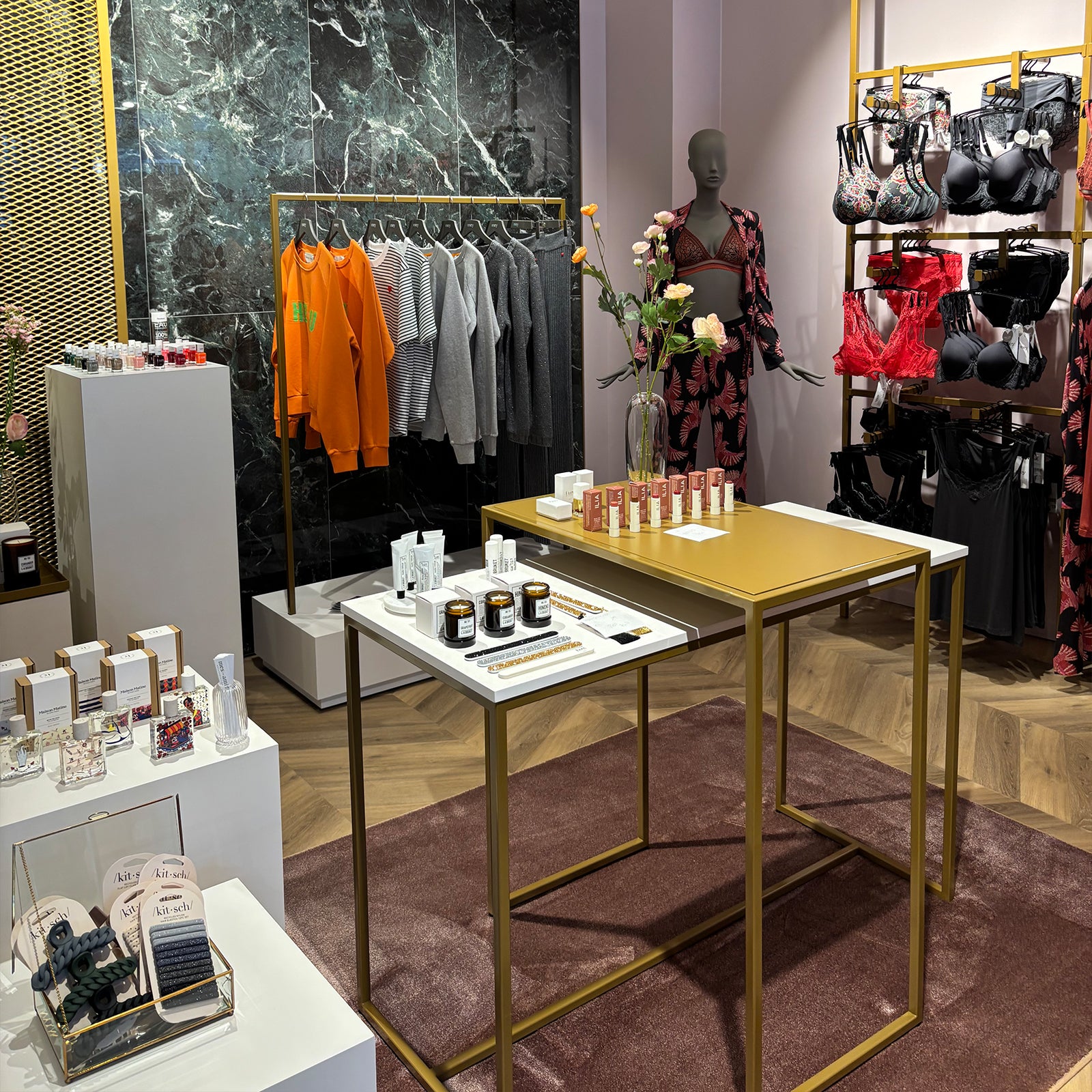Der Store ist hell, modern und zugleich einladend gestaltet. Auf großzügiger Fläche entfaltet sich eine liebevoll kuratierte Auswahl an feiner Lingerie, gemütlicher Loungewear, Nachtwäsche und stilvoller Bademode. Jedes Stück wurde mit Blick auf Komfort, Qualität und Ästhetik ausgewählt – für Mode, die nicht nur gut aussieht, sondern sich auch richtig anfühlt.